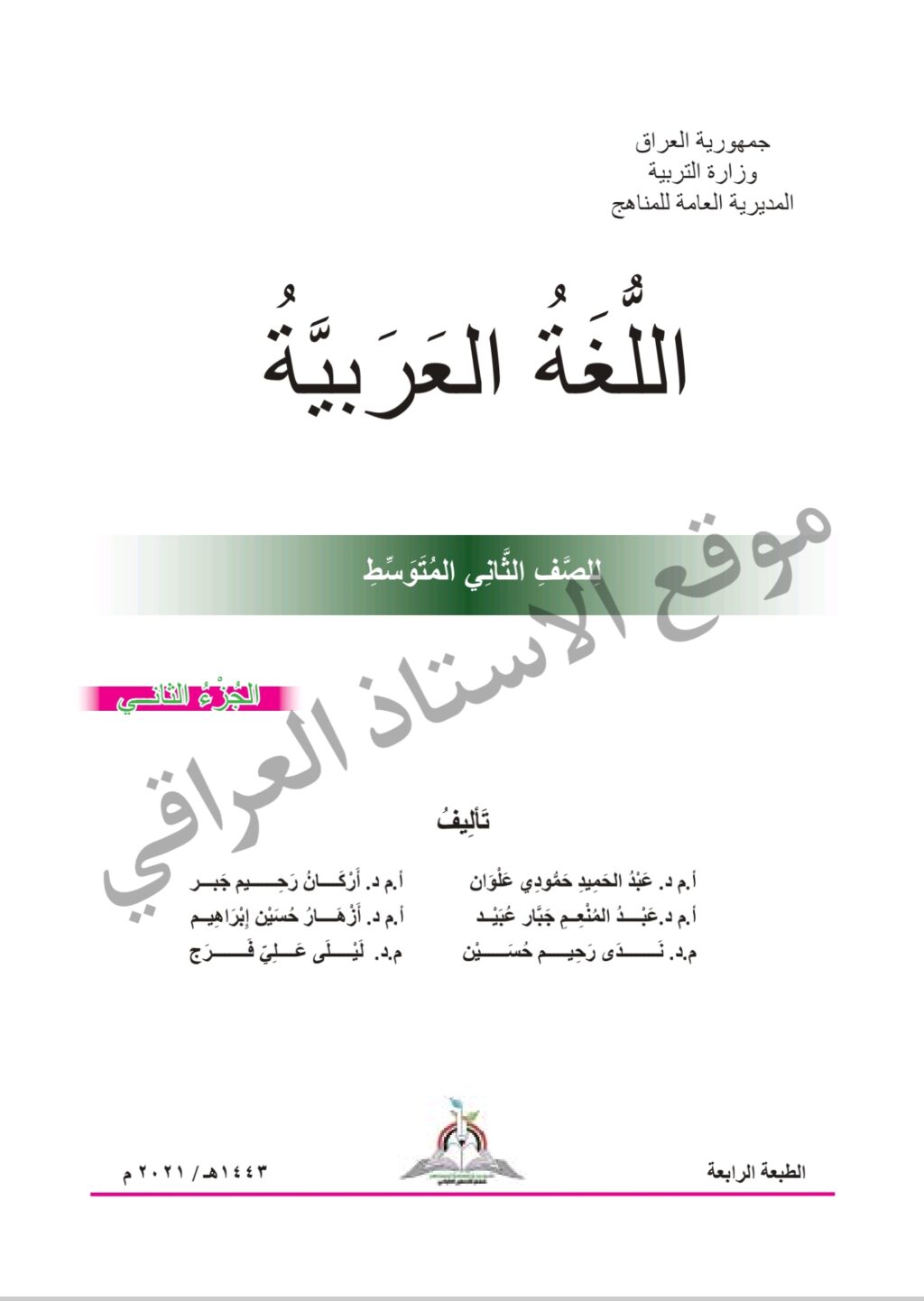 كتاب عربي للصف الثاني متوسط 2025 الجزء الثاني