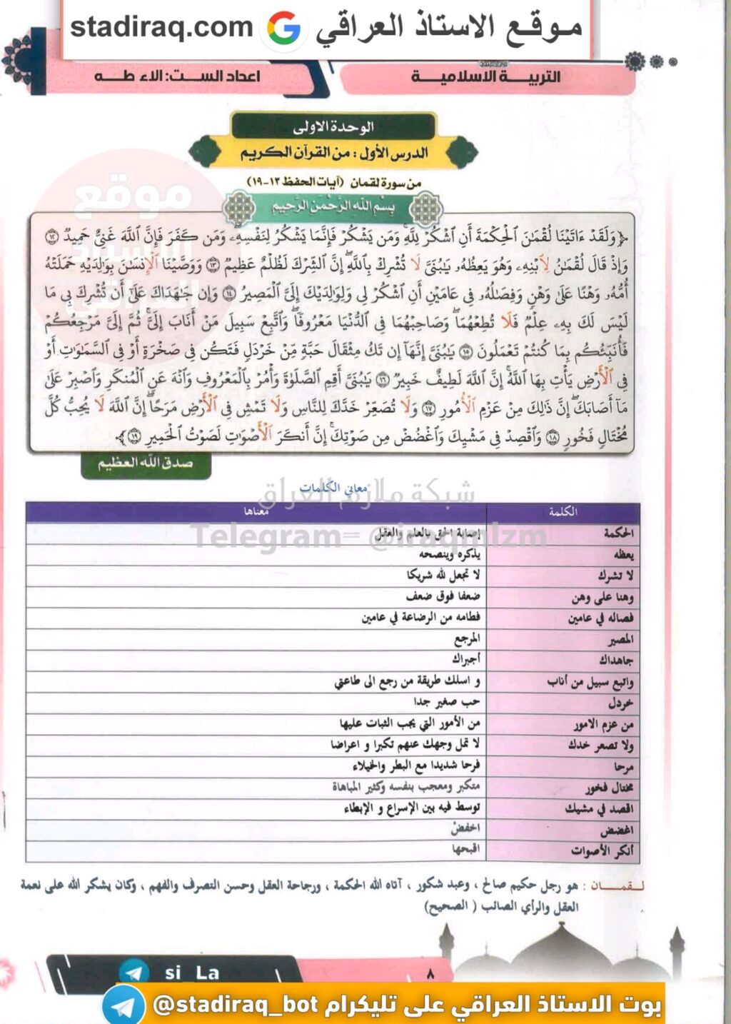 ملزمة اسلامية سادس ابتدائي 2025 pdf